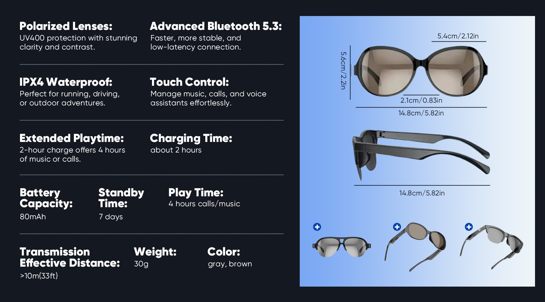 Combining an ultra-light design with a modern style, these sunglasses not only offer clear vision and high-quality sound but also enhance your fashion sense, making you the highlight of any holiday gathering.